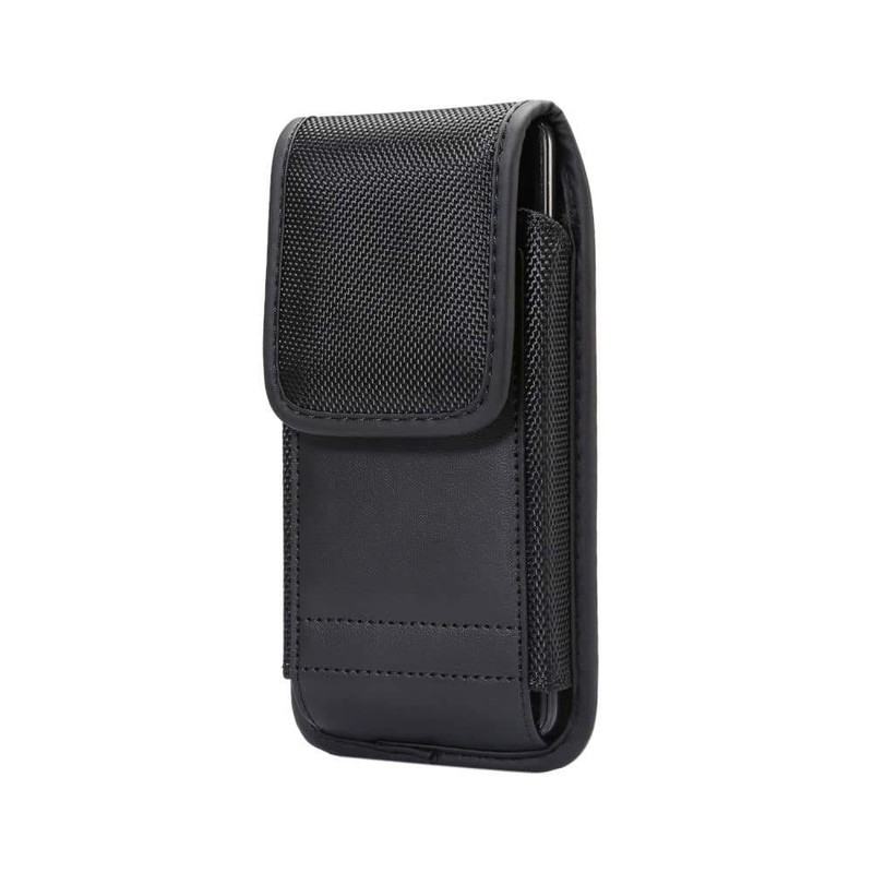- Vertical belt cover with adhesive fabric closure for maximum security. With belt loop on the back, to attach to the waist or belt. And it also has a carabiner as a way of fastening, to hold your case safely at all times.