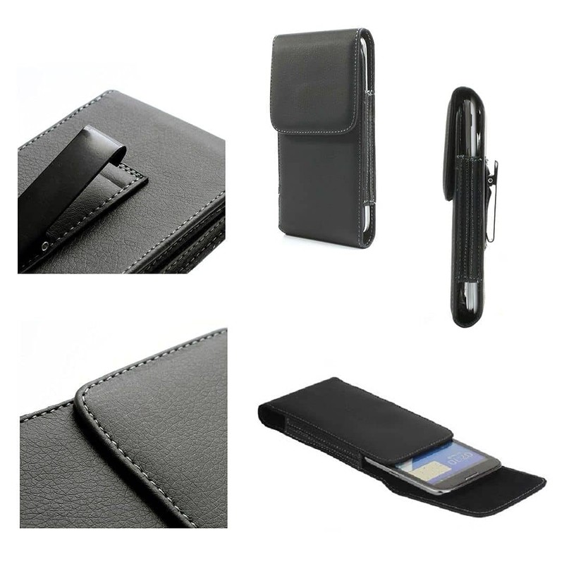 DFV mobile - Leather Flip Belt Clip Metal Case Holster Vertical für Sharp Aquos Zero2 (2020) - Black