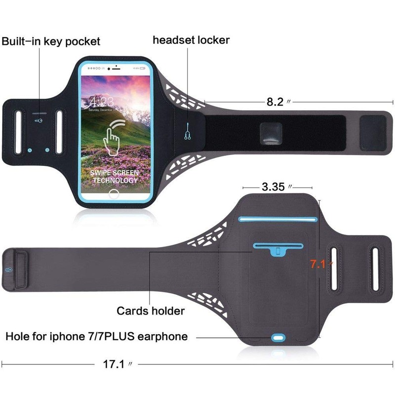 - The reflective strip around the screen offers security for night use. Adjustable, easy-to-close buckle design adapts to different arm sizes, keeps your phone secure to your arm. It effectively prevents sweat from seeping into the compartment. Unique with 4 invisible earphone holes + 1 earphone in the center, and another compartment designed for keychain, ensures the best sports experience.