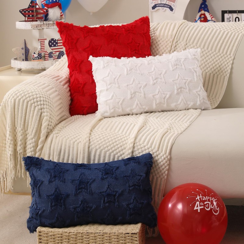 DFXSZ 4th of July Pillow Covers 12x20 inch 4th of July Decor Blue Stars Decoration Blue Soft Plush Faux Fur Jacquard Throw Pillows Independence Day Decorations for Home Sofa PTK032A12