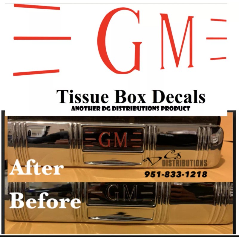 dg distributions GM Tissue box decal set master delux fleetline fleetmaster styleline Kleenex