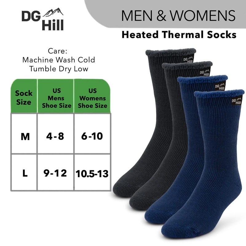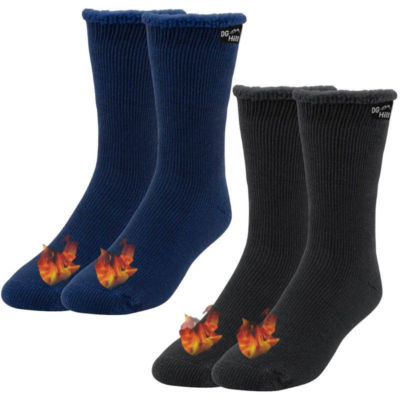 - Paquete de 2 o 4 calcetines térmicos de invierno: este paquete de calcetines térmicos DG Hill es grueso y cálido para temperaturas extremas. El interior está forrado con forro polar cepillado de felpa que es acogedor y suave para tus pies. El hilo térmico aislante atrapa el calor y mantiene los pies calientes incluso en los entornos más fríos y es 7 veces más cálido que los calcetines de algodón. Botas perfectas para clima frío y calcetines de esquí para hombres y mujeres, estos calcetines tienen una retención de calor superior para los brutales días fríos de invierno.
