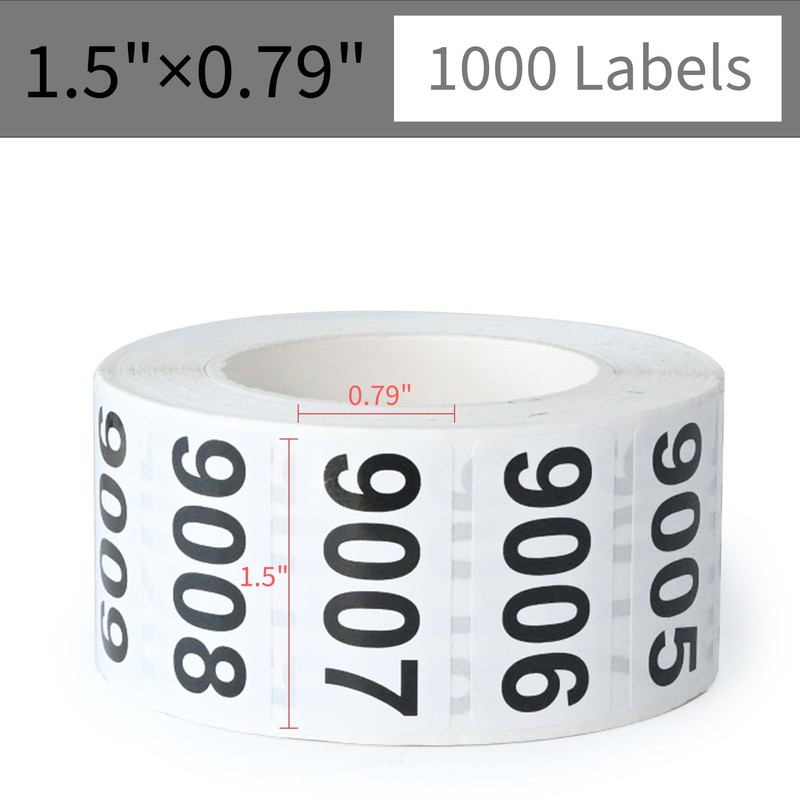 - Numbered labels: 1.5" x 0.79" inches, each roll of stickers has 1000 consecutive numbers (3001-4000).