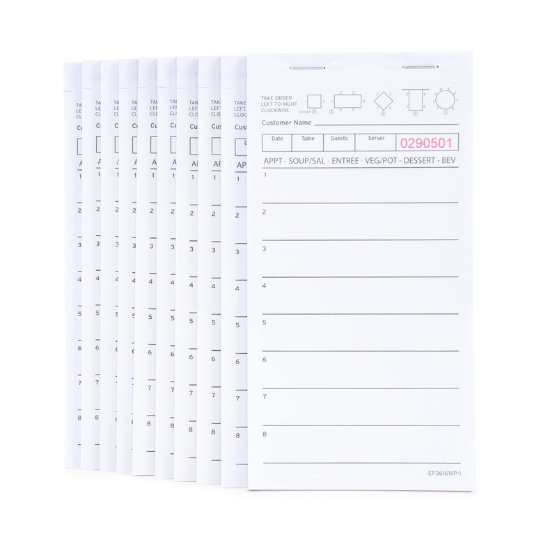 DGBDPACK Guest Check Pads EP-3616WP-1 (10 Pads), Total 500 Sheets White Waitress Notepad, Server Order Pads for Restaurant