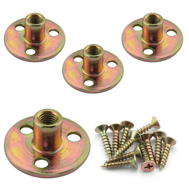 DGHAOP 4pcs Furniture Mounting Plate 5/16 Three-Hole Cylindrical Iron Plate Nut for Furniture Legs
