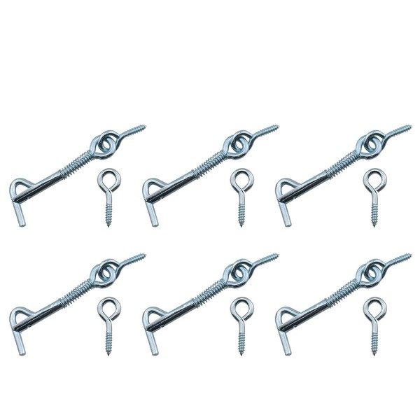 DGHAOP 6pcs Zinc-Plated Iron Spring Hook and Eye Safety Latch 2.5-inch Wire Gate Hook and Eye Latch