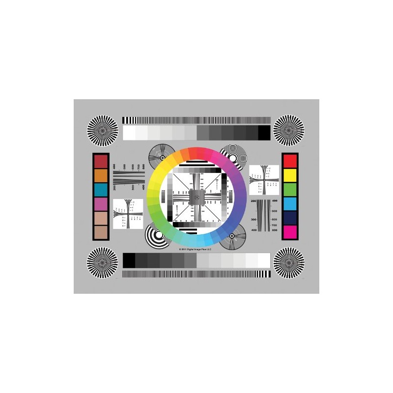 -- Front of chart has multiple bar, wedge, zone, and star patterns for lens testing. Works with any film or digital camera / video system.