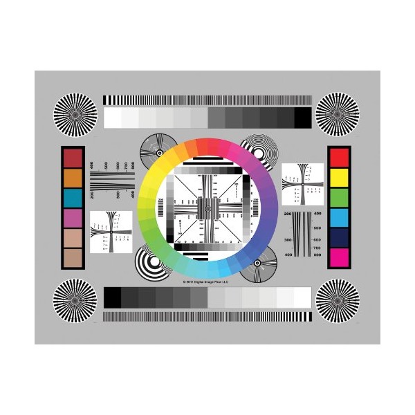 -- Front of chart has multiple bar, wedge, zone, and star patterns for lens testing. Works with any film or digital camera / video system.