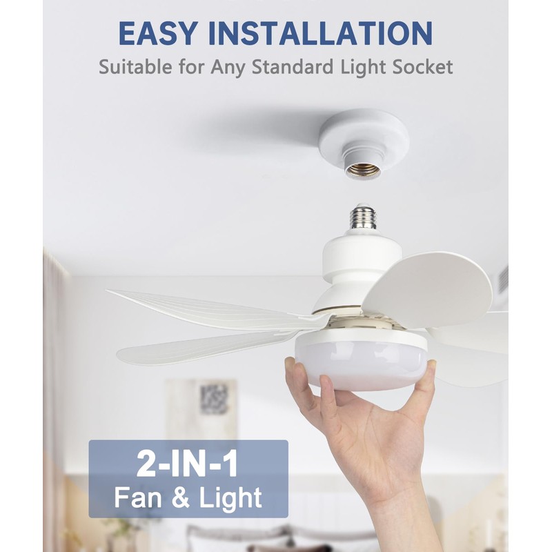 - Easy Installation & Long Distance Remote Control: Replacement for Traditional Light Bulbs, the Socket Fan light easily installs as you would a regular lightbulb,E26/E27 base is compatible with most light bulb sockets;Long distance remote control>9.8ft(battery isn't inclued), One click on the lights and fan to easy control of the Ceiling Fan with light.