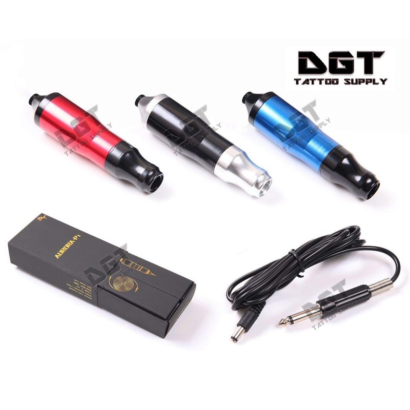 Color:Blue AURORA P1 Rotary Pen Machine and 1 power cord, Weight: 4.5 oz. Stroke: 3.5mm. 0 – 4.5mm adjustable needle depth. DC connection, Compatible with all cartridge needles, This machine features a powerful motor and an advanced gear system that guarantees reliable, quiet operation without any vibration, AURORA P1 Rotary Pen Machine Japan motor, continuous operation, Low noise, Long-lasting stability, Light weight, unibody, Operating voltage: 5-10 V DC, Rpm range Stitches / Sec: 8V-10000rpm / min 8-1000 / sec