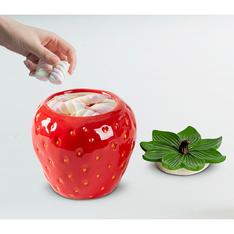 - Strawberry Shape Design: Embrace the unique charm of our candy jar, crafted in a cute, large red strawberry ceramic design that adds a playful touch to any setting.