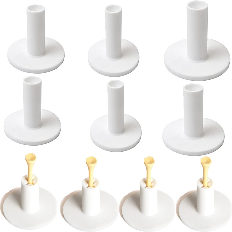 - Perfect Set of 10: The package comes with 10 pack mixed size tees, 4 pack of 1.5 in tees holder, 2 x 2.25 in golf rubber tee , 2 x 2.75 in golf rubber tee and 2 x 3 in golf rubber tee, it will be years to run out your golf tees, this is a great combos for golfer practice indoor & outdoor.