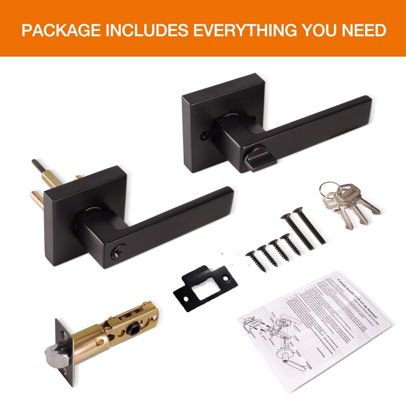 • PACKAGE INCLUDES: 1 pack door lever with key, 2 long screws(inside instruction) + 4 short screws per handle, strike plate set and instruction. Believe in us and we will offer you 100% satisfaction.