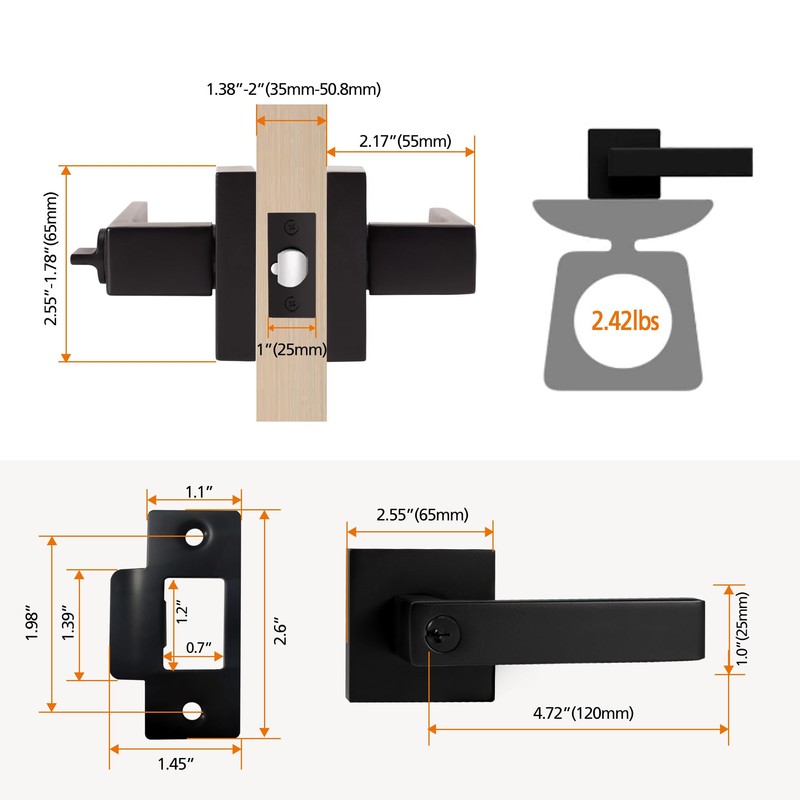 • VERSION UPGRADING: Heavy-duty door handle is made of premium quality zinc alloy and brass parts to guarantee rust-free in a high humidity environment. The thickened solid handle combined with high-quality materials is extra durable. Net weight is 2.42bl/per door lever