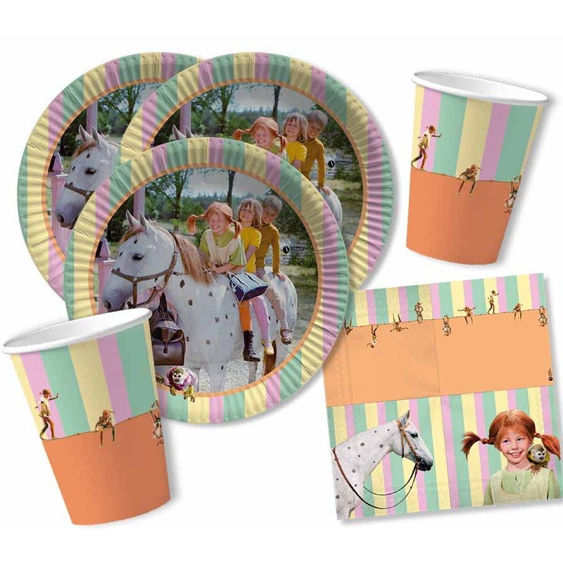 DH-Konzept Party Set Pippi Longstocking for 16 Guests - Plates Cups Napkins