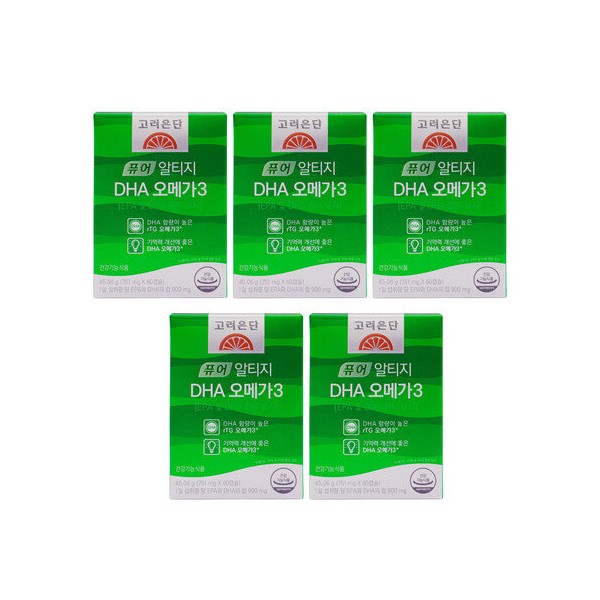 고려은단 퓨어 알티지 DHA 오메가3 751mg X 60캡슐 5통