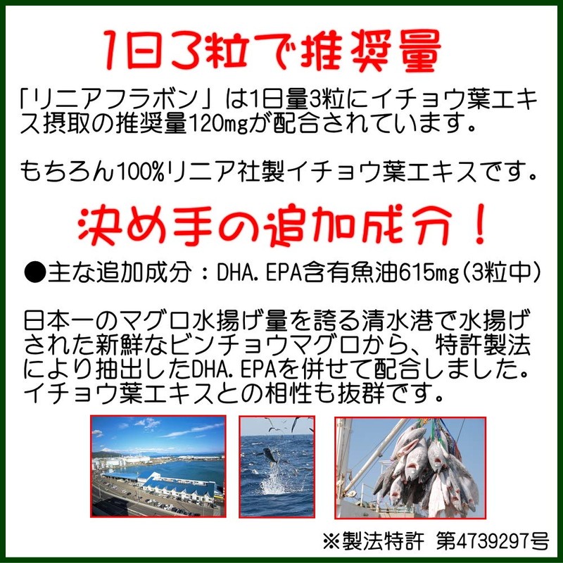 - イチョウ葉エキス サプリ 「リニアフラボン」は創業100年の佐賀県の老舗製薬会社が スイス製 イチョウ葉エキス と特許製法の DHA.EPA を配合して製造した、ハイクオリティーなサプリメントです。