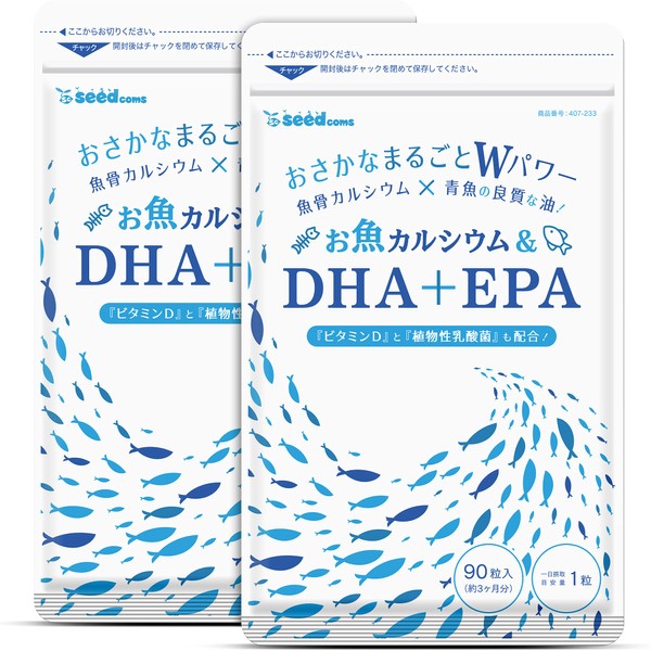 シードコムス お魚カルシウム & DHA + EPA ビタミンD 植物性乳酸菌 配合 (約6ヶ月分 180粒)