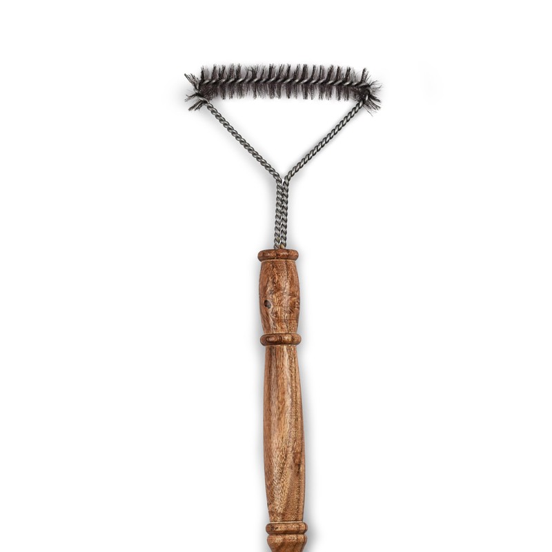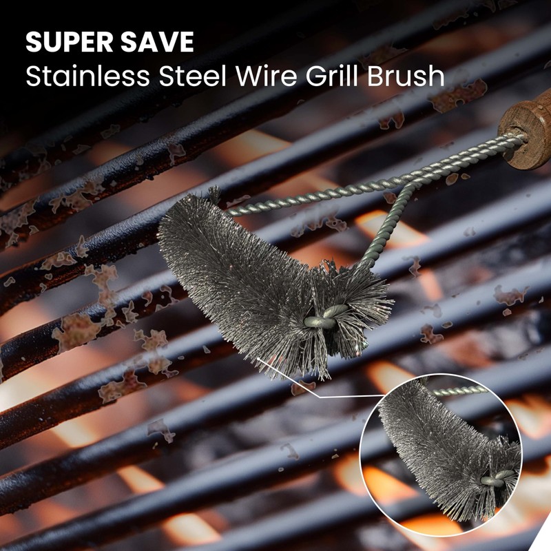 - 17” Large Wooden Handle – The BBQ grill cleaner has a 17-inch extended wooden handle, providing a comfortable grip and keeping hands safe from heat while scrubbing.