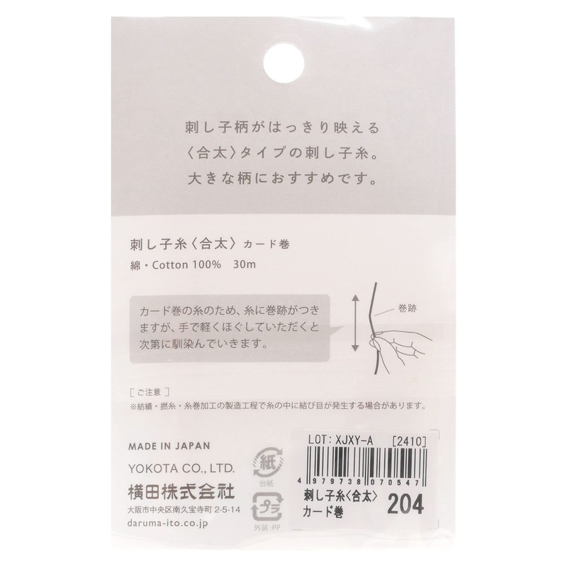 Dharma Sashiko Yarn, Card Roll, COL.204, Sunflower, Approx. 98.8 ft (30 m), 01-2410 Yellow