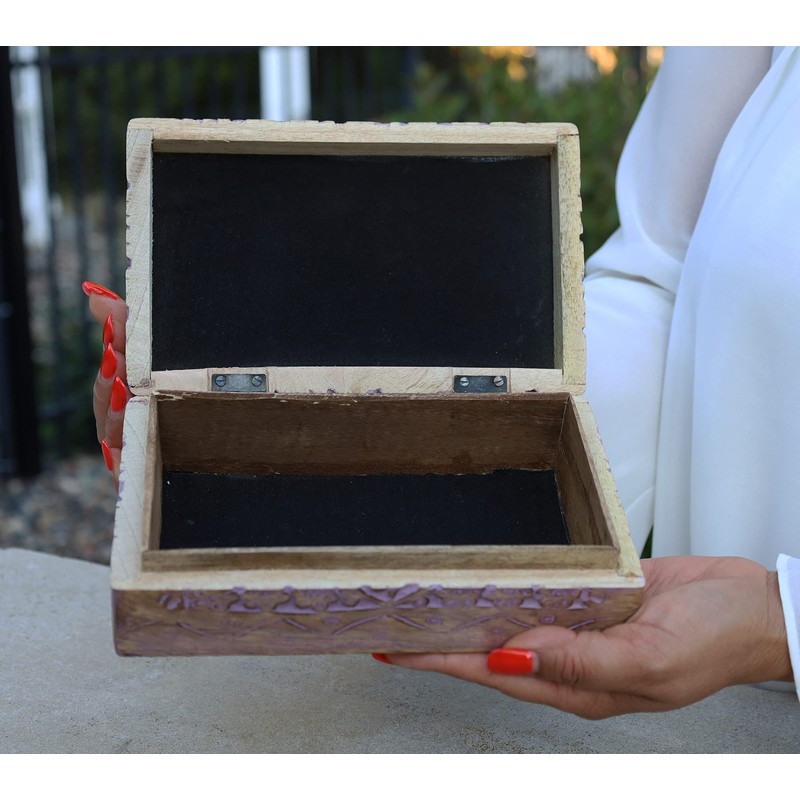 - ❤ DURABLE WOOD: Handcrafted from combination eco-sustainable mango wood and Recycled wood. It's recognized as tough and water resistant. Pure, natural wood is used for this box. Hand carved and finished, variations in knots, grain detailing, mineral deposits and minor imperfections may occur. These are considered part of the uniqueness and charm of the natural wood.
