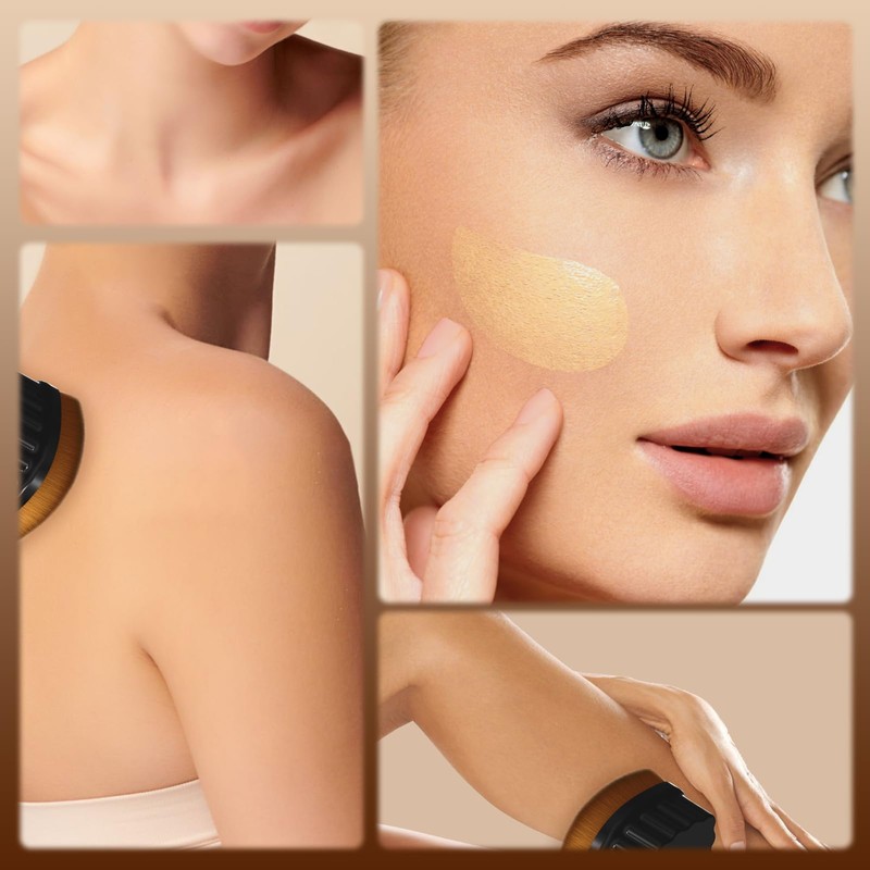 - Quick and Flawless Application: With a 60mm super-large brush design, this versatile foundation brush blends powders, liquids, creams, and concealers seamlessly. Perfect for busy routines, it easily covers the full face, reaching delicate areas like the sides of the nose. This brush also doubles as a concealer brush under the eyes and a blush brush for cheeks, achieving a professional makeup look in seconds.