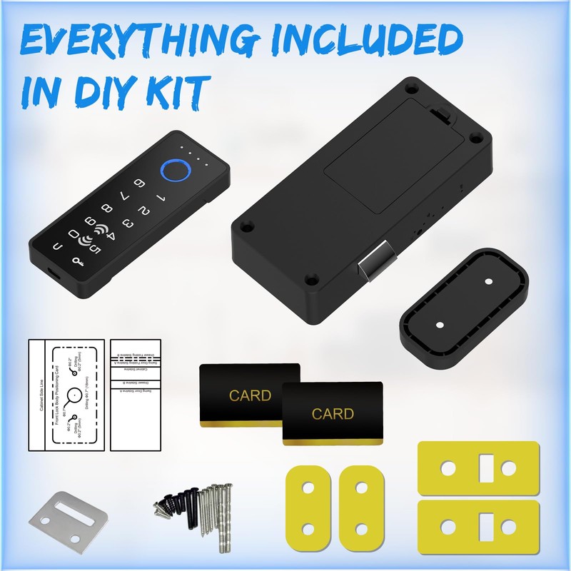 - Package included: 2*RFID cards, Drawer lock full components, 3M adhensive sticker, double door accessory