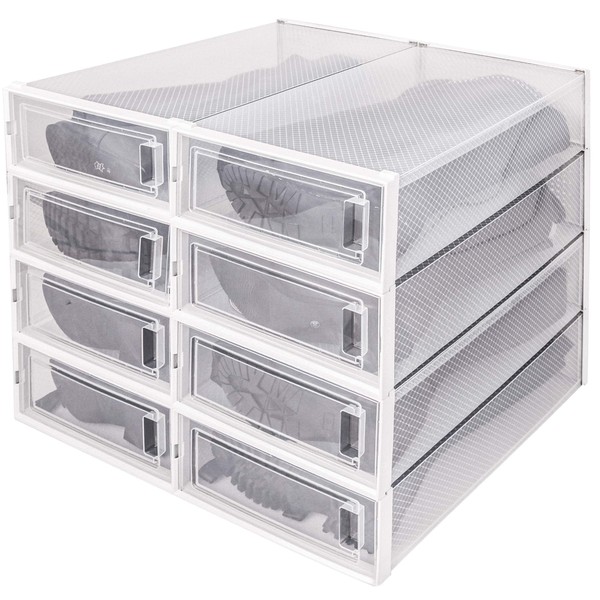 - 【Say Goodbye to Mess】 The stackable boot storage boxes are amazing for dust-proof and maximizing storage space. It's suitable for many kinds of shoes, including boots, athletic shoes, sneakers and high heels. Besides, you can easily find the right shoes through its clear front door.
