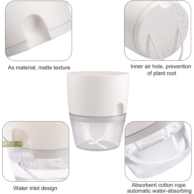 - High quality: The top and bottom layers of the self-watering flower pots are made of high-quality plastic as a whole, with high transparency, which is convenient for observing the water level and supplying water to the plants in time. In addition, our products are heat-resistant and cold-resistant. High strength and excellent toughness make it safe and durable. You can also separate the top and bottom layers to lift them up for refilling. The water can be kept for more than a week. When you are away from home, you don't have to worry about the plants dying due to lack of water.
