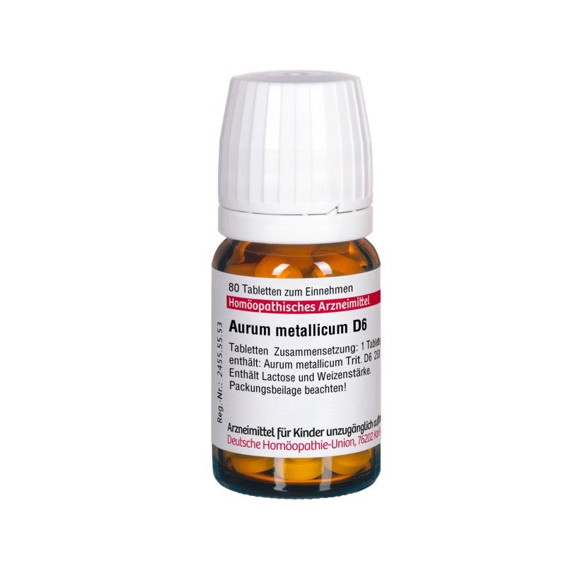 Aurum Metallicum D 6. Anwendungsgebiete: Registriertes homöopathisches Arzneimittel daher ohne Angabe einer therapeutischen Indikation. Warnhinweis: Enthält Lactose (Milchzucker) und Weizenstärke.
