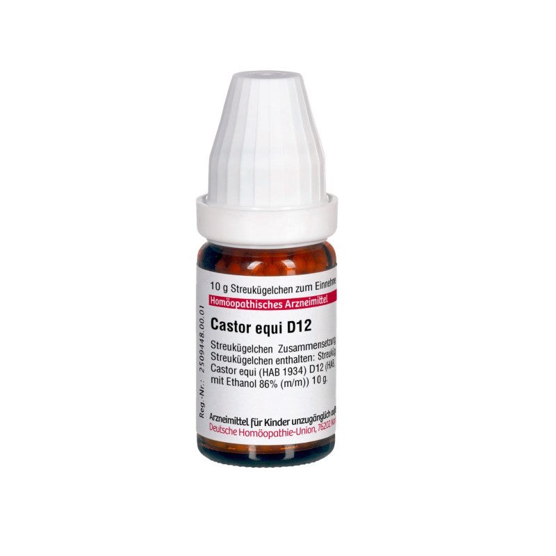 Castor equi D12, Streukügelchen. Anwendungsgebiete: Registriertes homöopathisches Arzneimittel daher ohne Angabe einer therapeutischen Indikation.