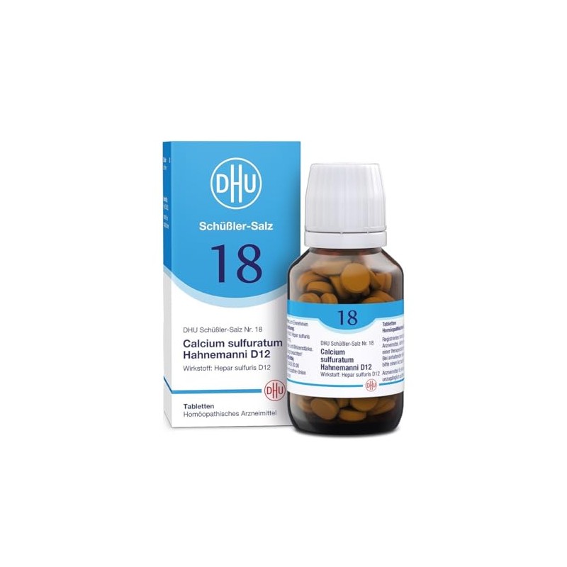 DHU Schüßler Salt No. 18 Calcium Sulfuratum Hahnemanni D12 - The Mineral Salt of Regeneration - The Original - Environmentally Friendly in Medicine Glass, Pack of 200 Tablets