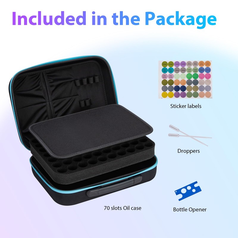 • 【Complete Accessories】Not only comes with colorful stickers to quickly find the oil you need, bottle opener and droppers for easy organization. But also comes with convenient carrying silicone handle and strong zipper.