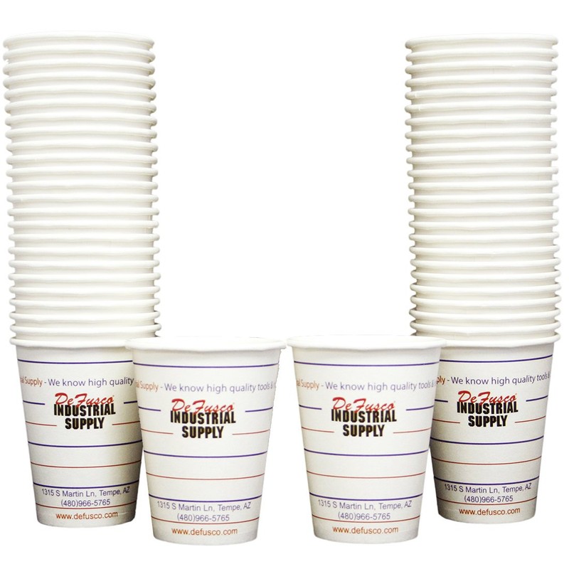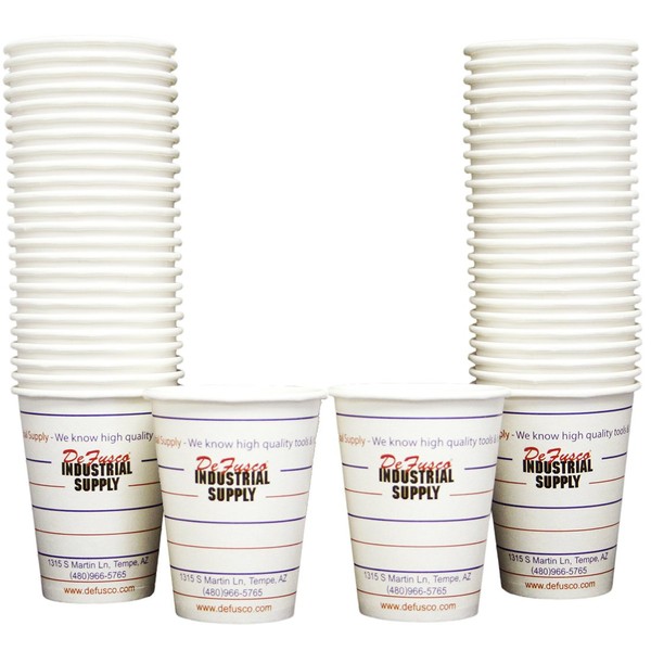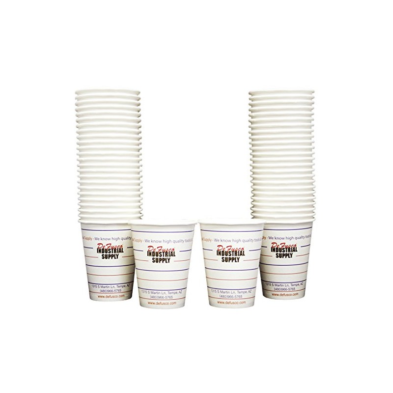 Get your DeFusco Industrial Supply mixing cups for perfect ratio mixing for epoxies. These calibrated cups come in a pack of 50. With a double lining the paper cups are protected all-around, preventing interior leakage and exterior condensation. Smooth rolled rims and satin-smooth exterior finishes give these cups an upscale look and a strong, sturdy feel. This premium paper cup is designed for mixing epoxy and other bi-component glues, but can also be used for cold drinks!