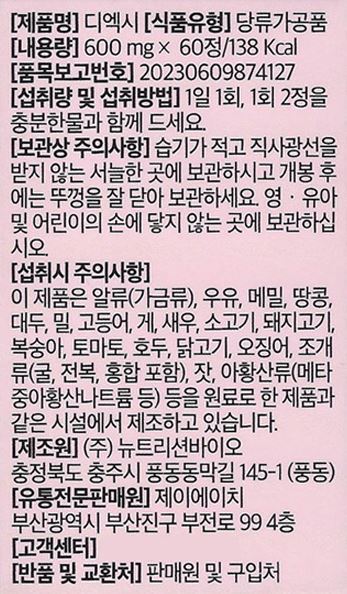 엑시레시피 디엑시 60정 1개 로즈스틴 로즈합추출분말 Di Exy
