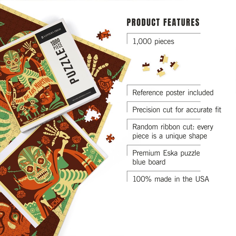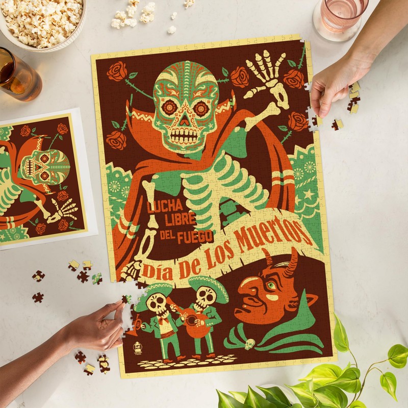 - Dia de los Muertos (Day of the Dead), Lucha Libre del Fuego (1000 Piece Puzzle, Challenging Jigsaw Puzzle for Adults, Made in USA).