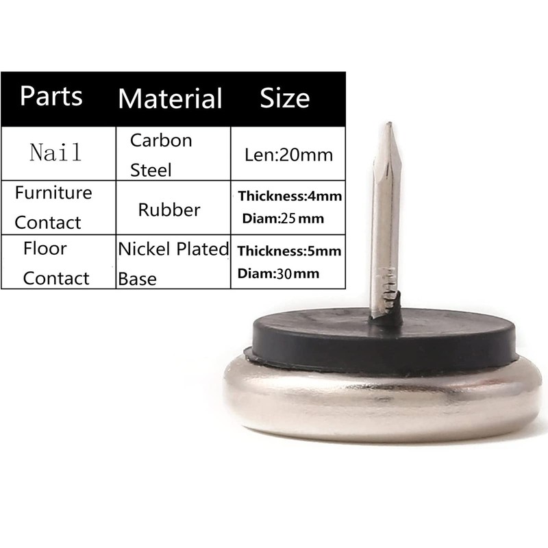 - HIGH QUALITY MATERIAL: Furnigear Nail on glides come with high quality carbon steel nail, stable rubber cushion and durable nickel base, ensure longevity and durability, designed for application on straight wooden furniture legs