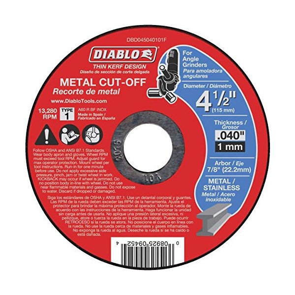 Diablo Type 27 4-1/2 In. x 1/8 In. x 7/8 In. Metal/Stainless Grinding Cut-Off Wheel
