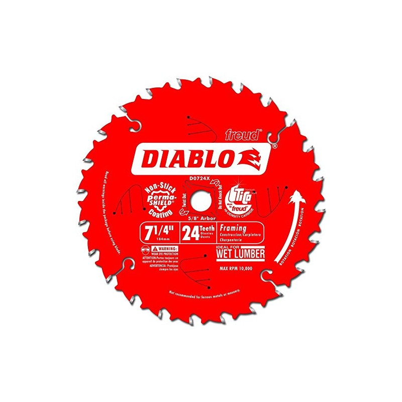 Diablo Freud D0724X 7-1/4-Inch 24 Tooth ATB Carbide Framing Saw Blade 5/8-Inch Diamond Knockout Arbor (4 Pack)