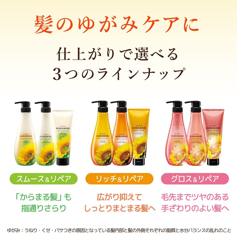 - ✔【What is hair distortion? The hair is prone to fading and swelling from the late 30s and begins to feel a change in your hair. Changes in hair such as ribbing, flecks and passins are caused by the disruption of fat and moisture balance between the inside and outside of the hair, and the so-called "hair distortion". Diaborte HIMAWARI contains the "Premium Sunflower Oil EX" concentrated with the power of nutritious sunflowers. The premium sunflower oil EX is rich in omega fatty acid. This is a highly fluid and fast penetration rate that transfers into the hair and balances lipids and moisture inside and out