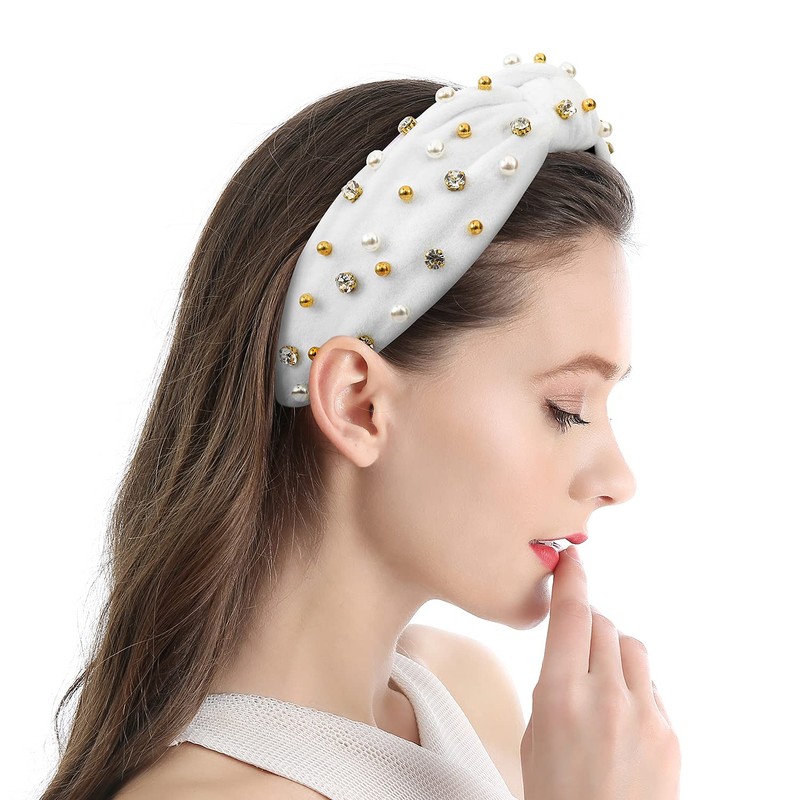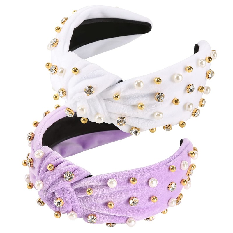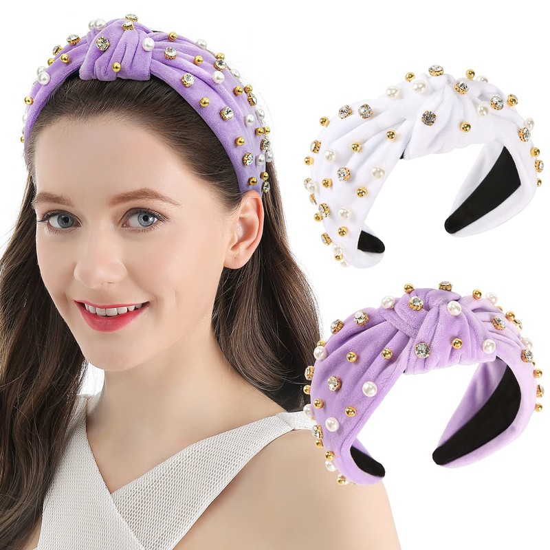 Diadema ancha con diamantes de imitación para mujer, diadema de perlas para niñas, color blanco, con cuentas, 2 unidades