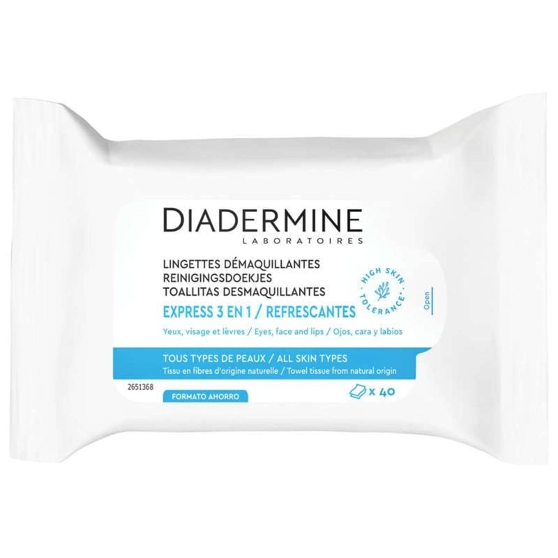 Diadermine – Lingettes Déma Quillantes Express 3en1 Visage Yeux/lèvres X40