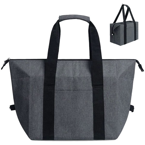 - 2-way type large capacity insulated bag. Change from tote to square by fastening the snap buttons on both sides