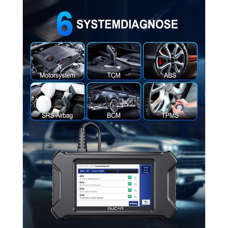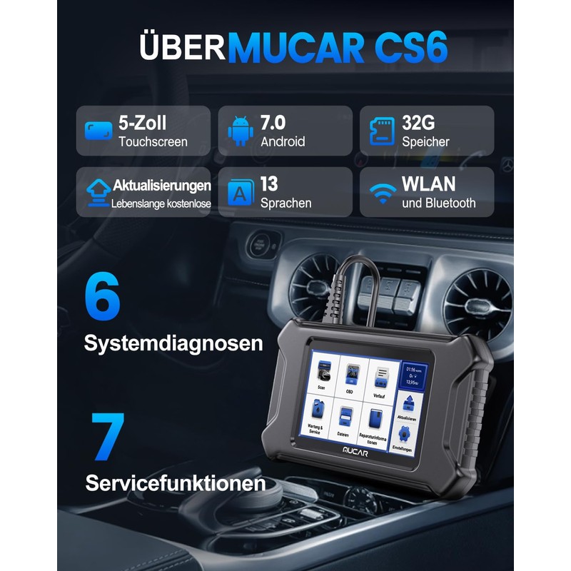 Diagnosegerät Auto, MUCAR CS6 Auto Auslesegerät Mit 6 Systemdiagnosen (ECM/TCM/ABS/SRS/TPMS/BCM) + 7 Servicefunktionen, Automatische VIN, Kostenlos Aktualisierungen