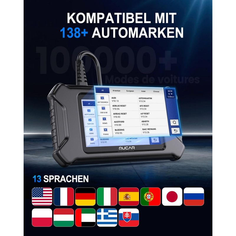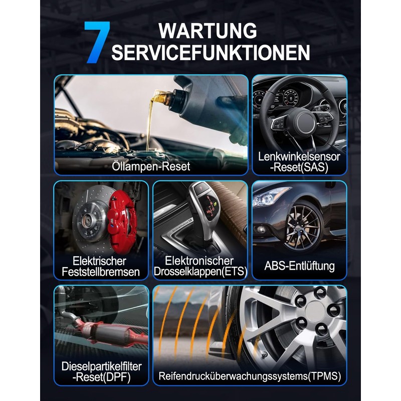 - 【WLAN AKTUALISIERUNGEN】- Nachdem Sie unser Produkt erhalten haben, verbinden Sie sich bitte mit dem WLAN und akzeptieren oder ergreifen Sie die Initiative, um das APP-Betriebssystem und die Diagnosesoftware der Automarke zu aktualisieren, um ein besseres Produkterlebnis und eine bessere Fahrzeugdiagnose zu erhalten.