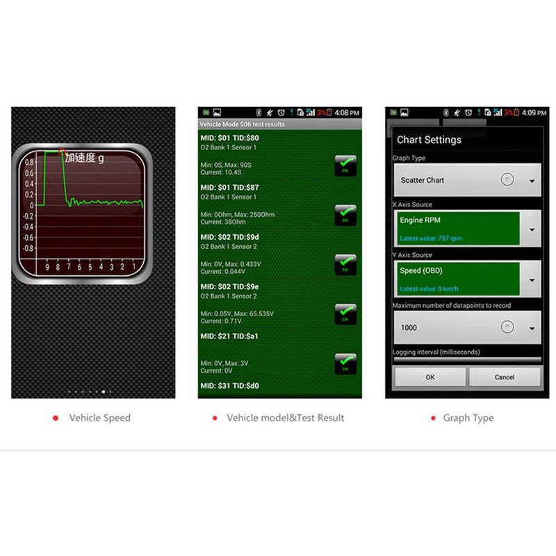 - 🚗Admite los protocolos OBD-II: ISO15765-4 (CAN), ISO14230-4 (KWP2000), ISO9141-2, J1850 VPW, J1850 PWM. Para que su vehículo sea compatible con OBD II, debe tener un 16 -pin DLC (conector de enlace de datos) debajo del tablero y la etiqueta de información de control de emisiones del vehículo debe indicar que el vehículo cumple con OBD II.