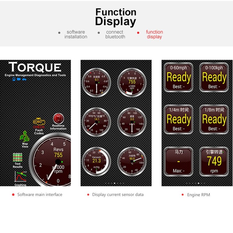 - 🚗Multifunción: OBD2 Bluetooth diagnóstico escáner de coche compatible con Android Torque conexión Bluetooth, sin baterías, cables o interruptores, Bluetooth inalámbrico de unos 5 ~ 10 metros. Recupera códigos de error (DTCs) y comprueba las luces del motor. Android, Torque, & Compatible con ELM. Ver datos en vivo del motor en su teléfono Android o un PC.