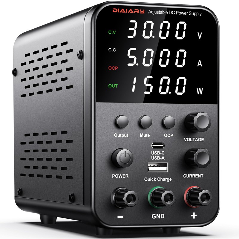 DC Power Supply Variable, 32V 5A Adjustable Switching Regulated DC Bench Power Supply with Intelligent Charging Mode, 18W USB Interface, Precision Encoder Knob