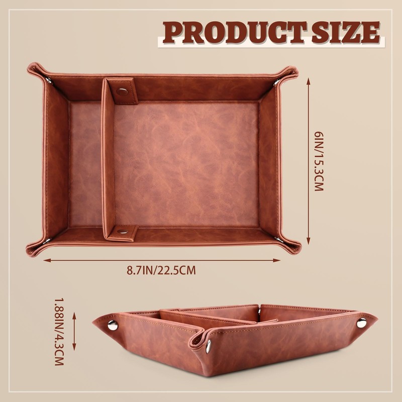 - Removable 2 Compartments: This 2-compartment key tray helps you to categorize and store your items while providing easy access. Of course you can also remove the divider for larger storage space. Folded: (25 x 19 x 5cm) Unfolded: (32 x 25cm)