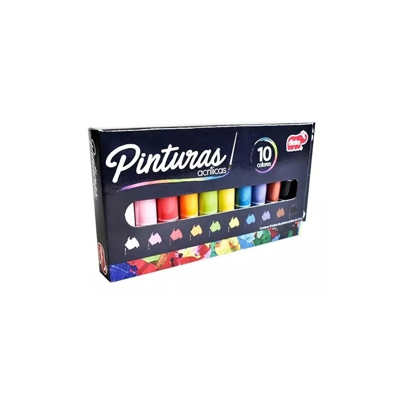 - Contiene: 10 tubos de pintura acrílica de 12 ml cada uno.